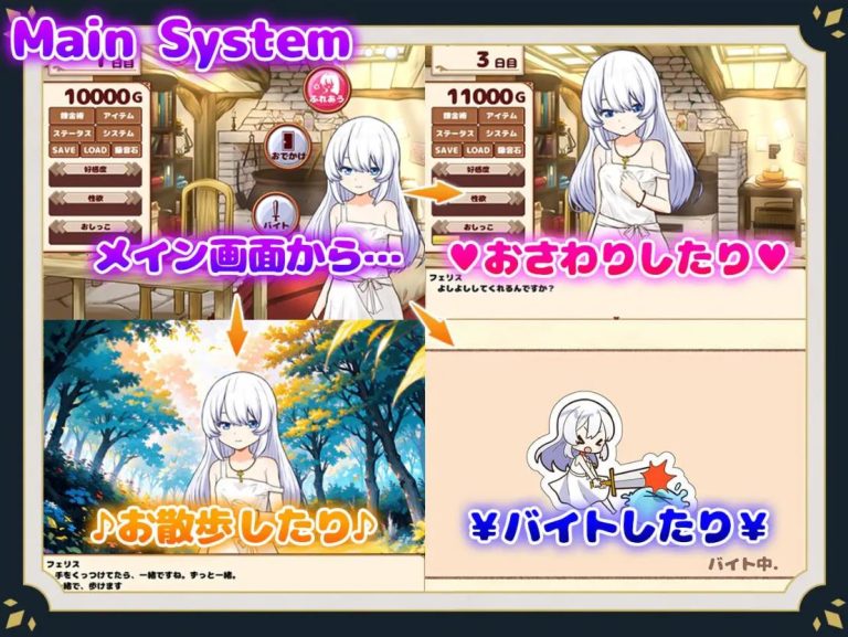 一起外出散步、打工赚取报酬、动手炼金制作道具,享受丰富多彩的互动体验。