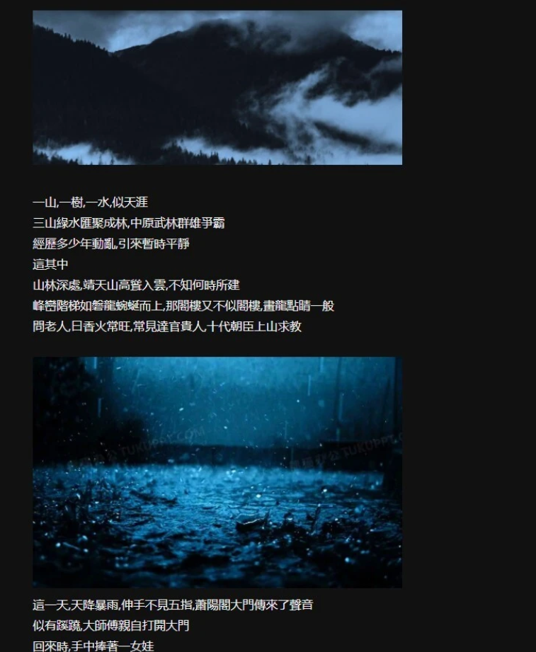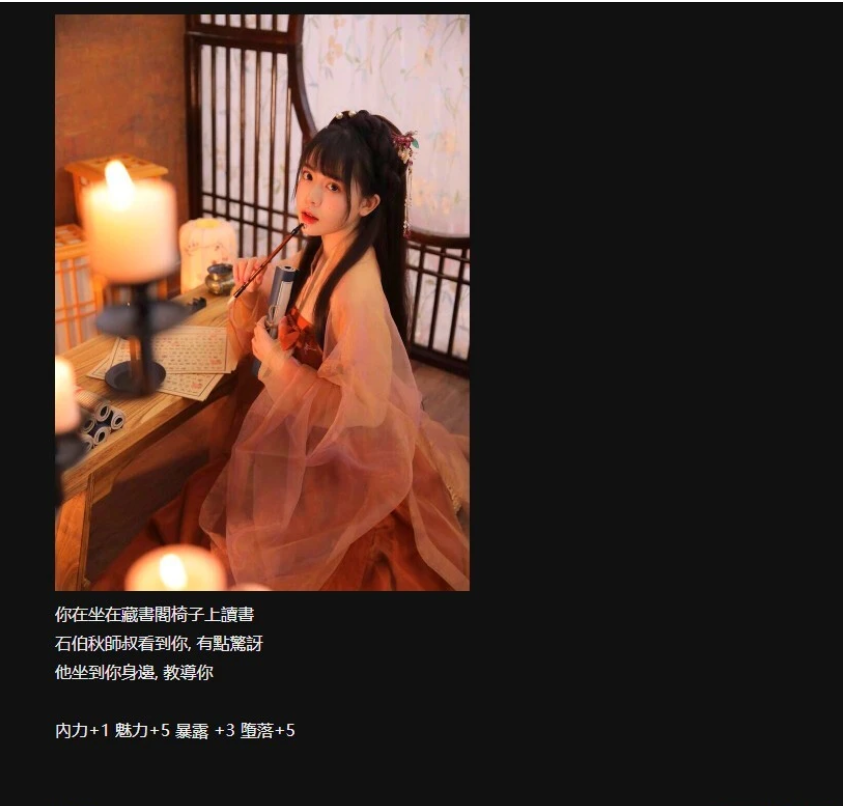 海量动态CG和动态视瓶场景,全是作者精挑细选的武侠古风社保素材,很入戏。