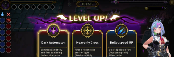 游戏准备了40多种技能,在升级时可以随机选择技能。