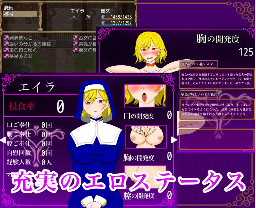 本作是基于”高傲女性狼狈不堪地快乐堕落的情境”这一个人喜好而制作的、专注于色情的RPG。