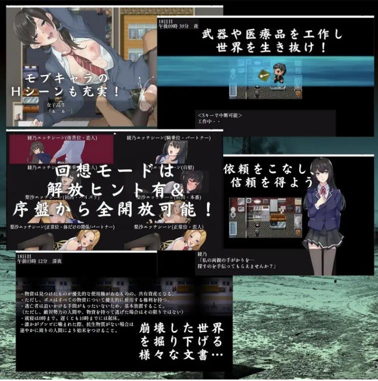 在充满丧尸的末日后世界中一边生存,一边拯救美女们,并要求她们以肉体回报自己的RPG游戏。