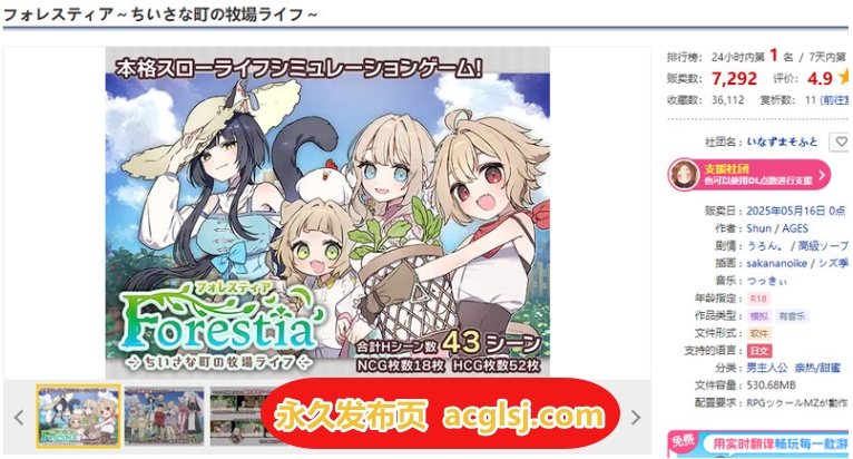 新官中【爆款SLG/日常生活】Forestia~小镇的牧场生活~(フォレスティア~ちいさな町の牧場ライフ~) V1.0.6 官中版+全回想存档