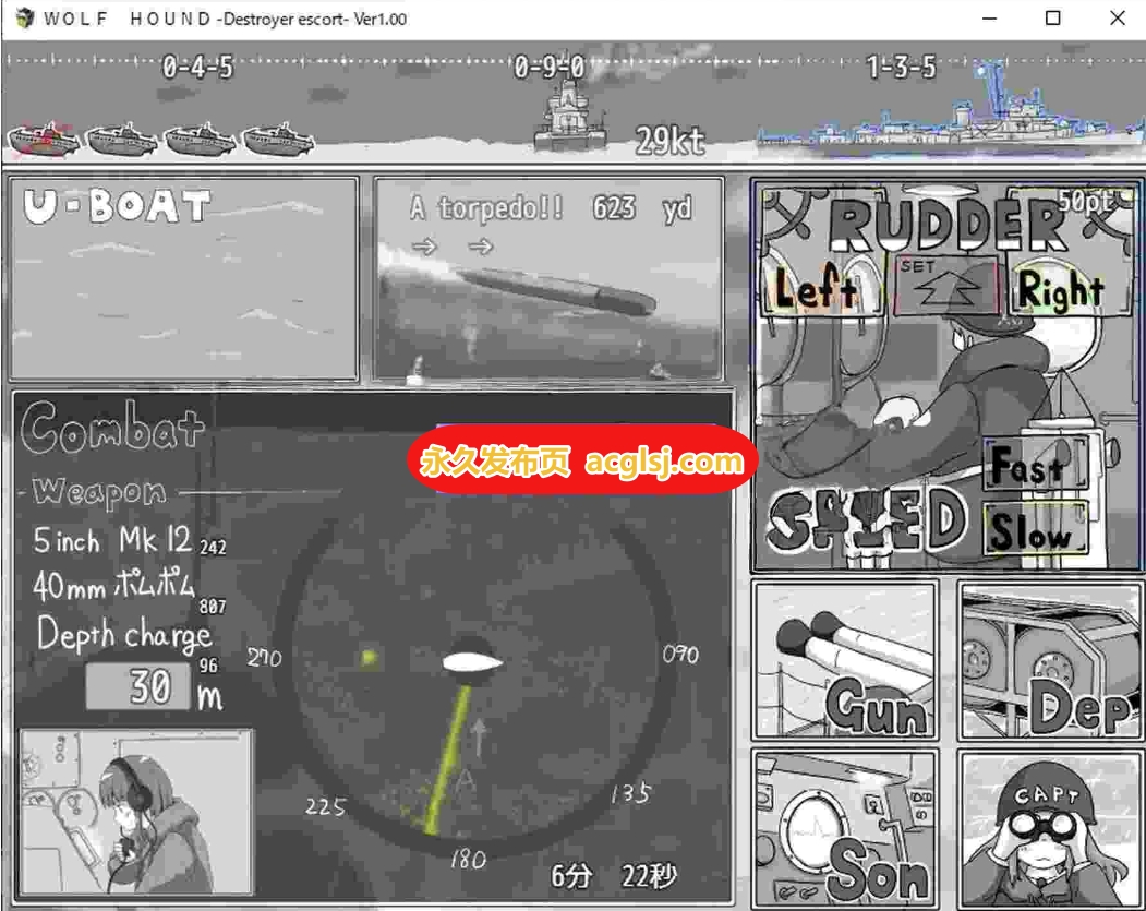 ・枪炮长 …… 使用主炮、高射炮、机关炮攻击上浮的 U 型潜艇