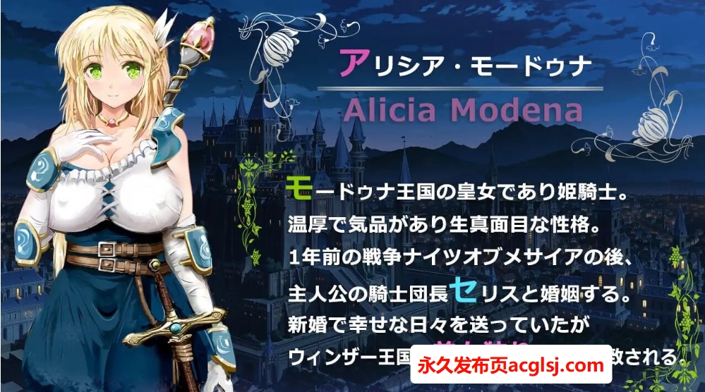 然而,作为主角塞利斯的妻子兼骑士公主的艾丽西亚,与他的妹妹、格斗家玛雅,却被温莎王国的利兹王子绑架了。