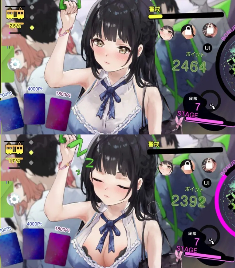 玩家扮演疲惫的加班族,在空荡车厢里偶遇一位昏昏欲睡的女性。