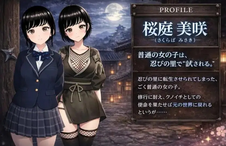 内向女高中生樱庭美咲意外穿越至忍者之乡,必须通过完成修行任务积累实力,最终达成使命返回原世界。