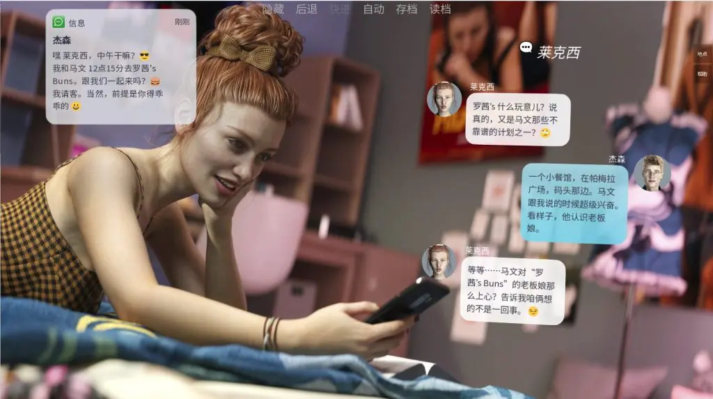 高度自由叙事: 选择动态塑造故事走向,改变对话、场景和角色互动,产生显著涟漪效应。